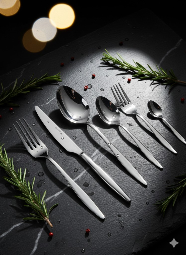 Ersanhome Çatal Bıçak setleri, Türkiye’de üretilir ve yüksek kaliteli paslanmaz çelikten yapılır. Üretim süreci, malzeme seçimi, şekillendirme, ısıl işlem, tornalama, cilalama, kalite kontrolü ve paketleme adımlarını içerir. Sonuç olarak, dayanıklı, paslanmaz ve estetik ürünler oluşturulmuştur.