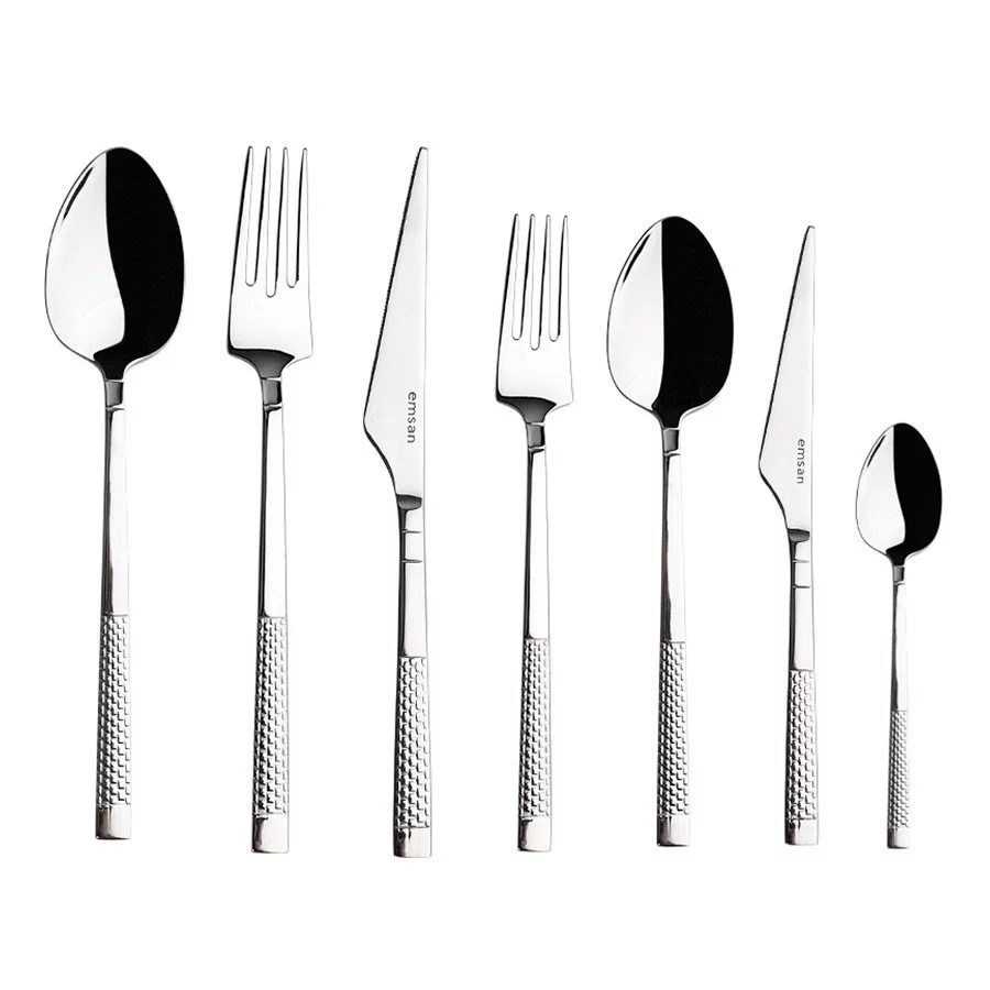 Çeliğin en şık formunu sofralarınıza Emsan kalitesinde taşıyan paslanmaz çatal, kaşık, bıçak seti