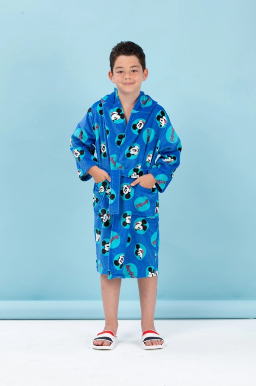 Özdilek Disney Lisanslı Mickey Smile Mavi Nakışlı 5-6 Yaş Kapüşonlu Çocuk Bornozu