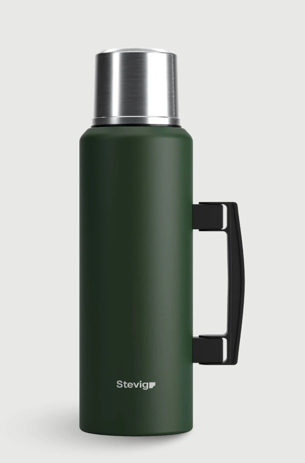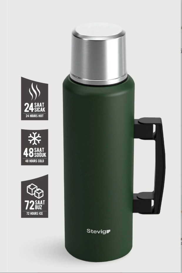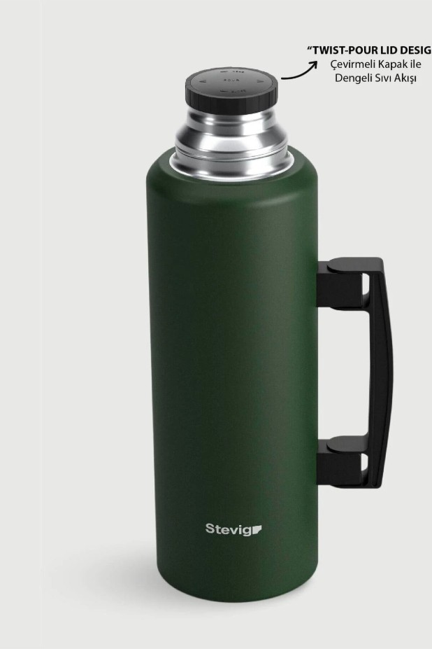 Stevig ST-206 4 Camp Klasik Vakumlu Kulplu Çelik Termos 1.5LT Green