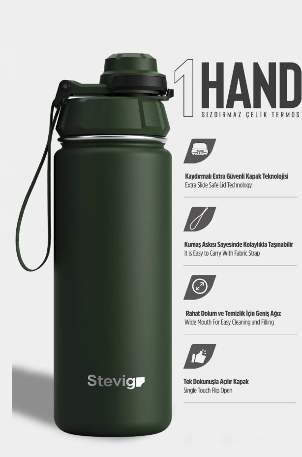 Stevig ST-208 1 Hand Leak-Proof Sızdırmaz Çelik Termos 500ML Green