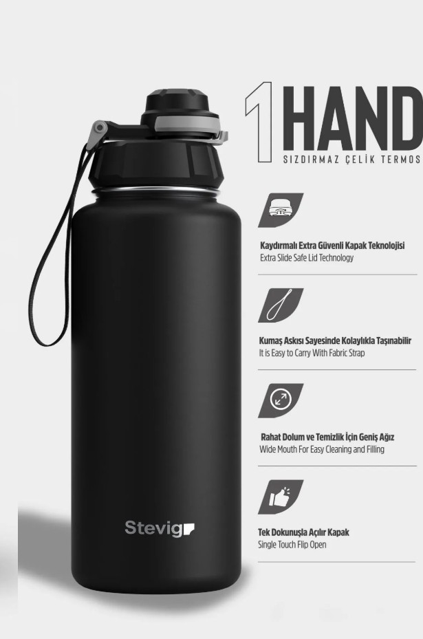 Stevig ST-210 1 Hand Leak-Proof Sızdırmaz Çelik Termos 1000ML Black