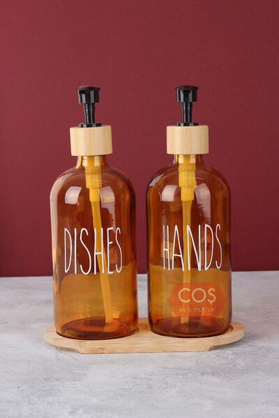 Coşev Bambu Standlı 2Li Amber Sıvı Sabunluk