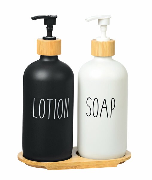 Coşev Bambu Standlı 2Li Siyah Beyaz Sıvı Sabunluk