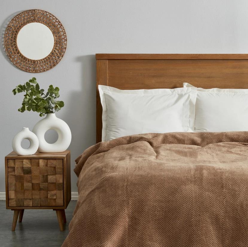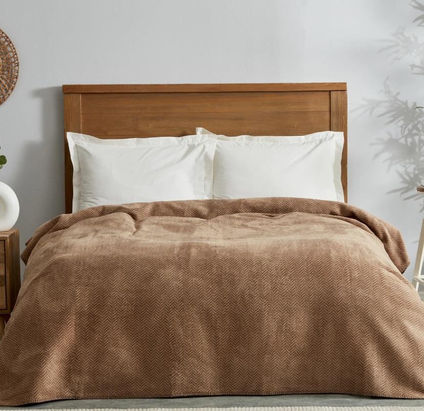 Karaca Home Sandra Bej Çift Kişilik Balık Sırtı Pamuk Battaniye