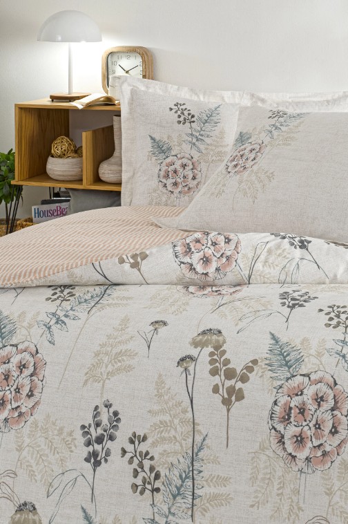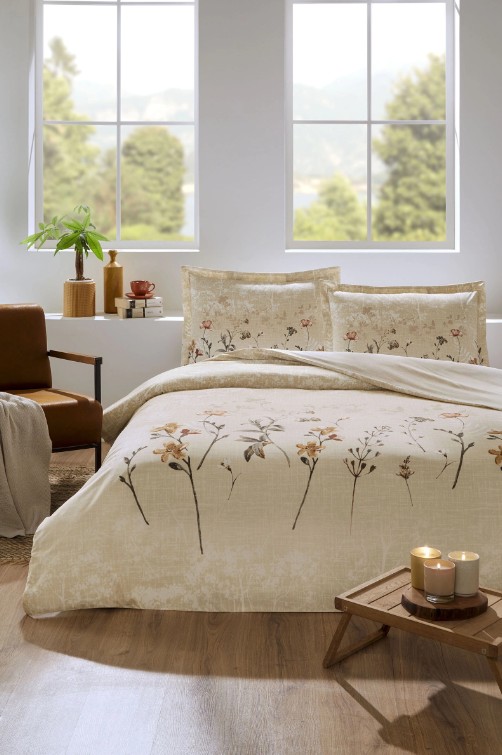 Özdilek Phlox Krem Çift Kişilik %100 Pamuk Lastik Çarşaflı Nevresim Takımı
