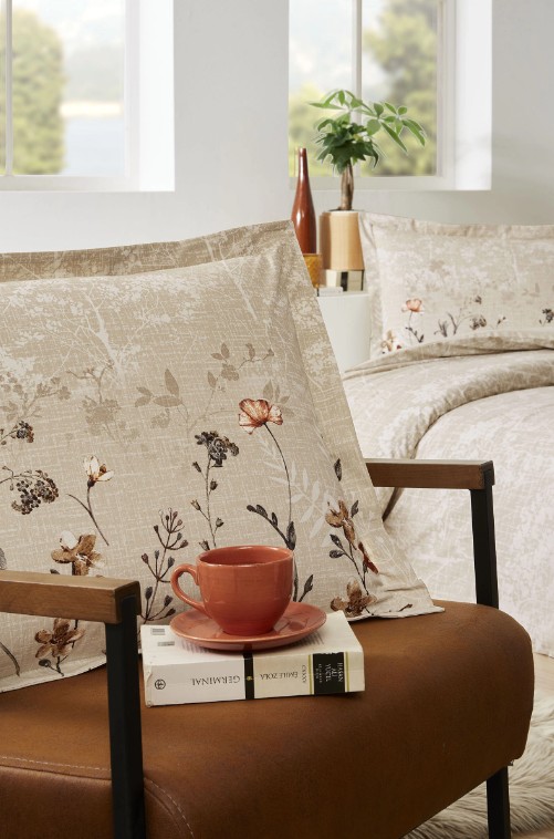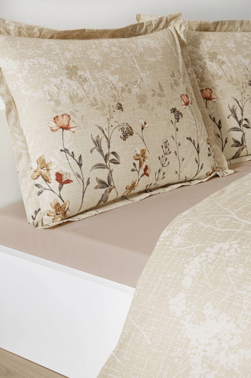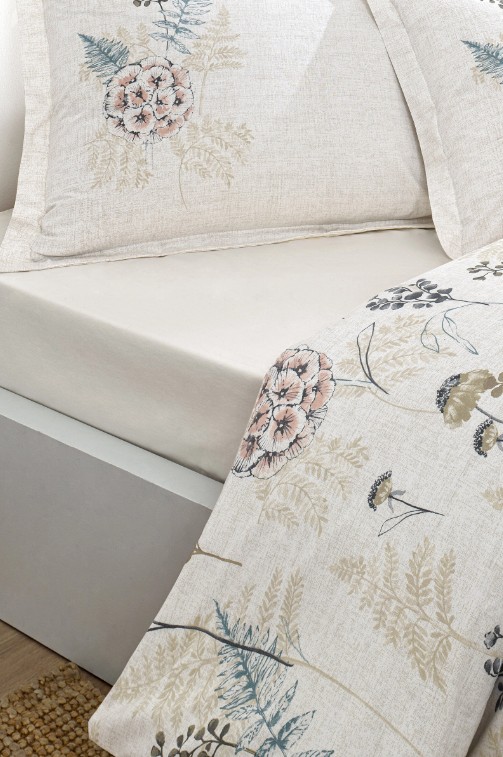 Özdilek Phlox Krem Tek Kişilik %100 Pamuk Lastik Çarşaflı Nevresim Takımı