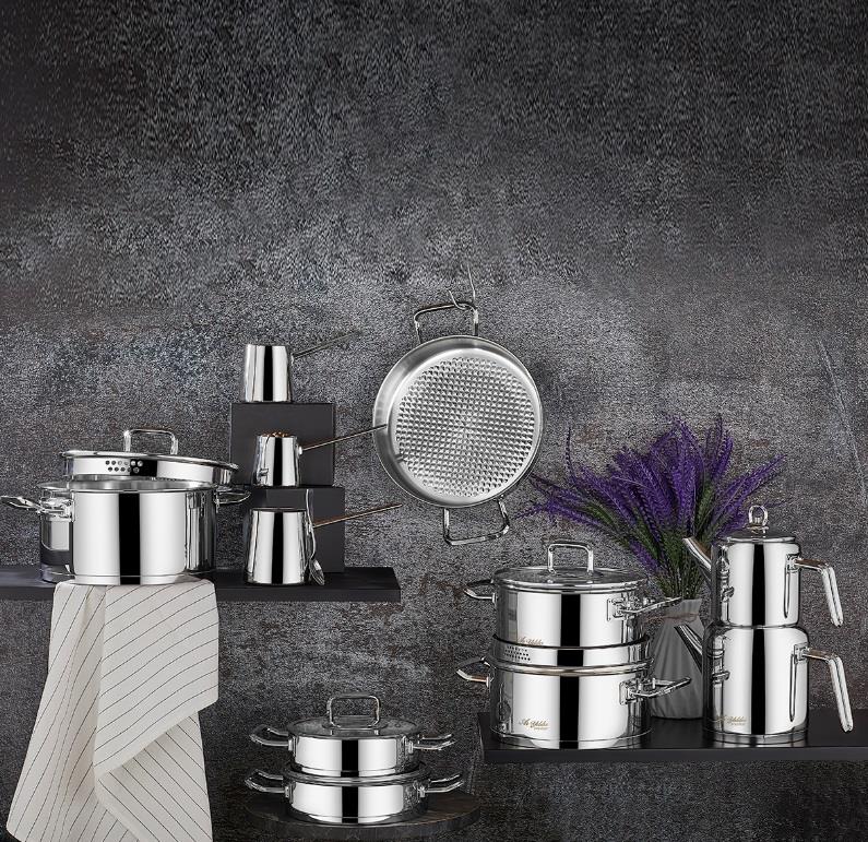 (Çelik demlik kapağı + demlik + çelik suluk kapağı + suluk)