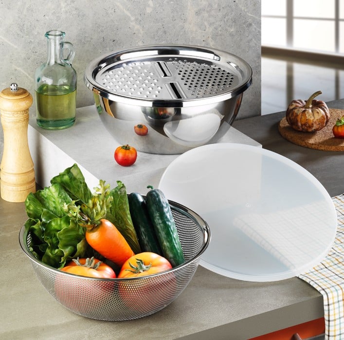 Hem saklama kabı, hem rende, hem süzgeç, hem de karıştırma kabı olarak kullanabilirsiniz.