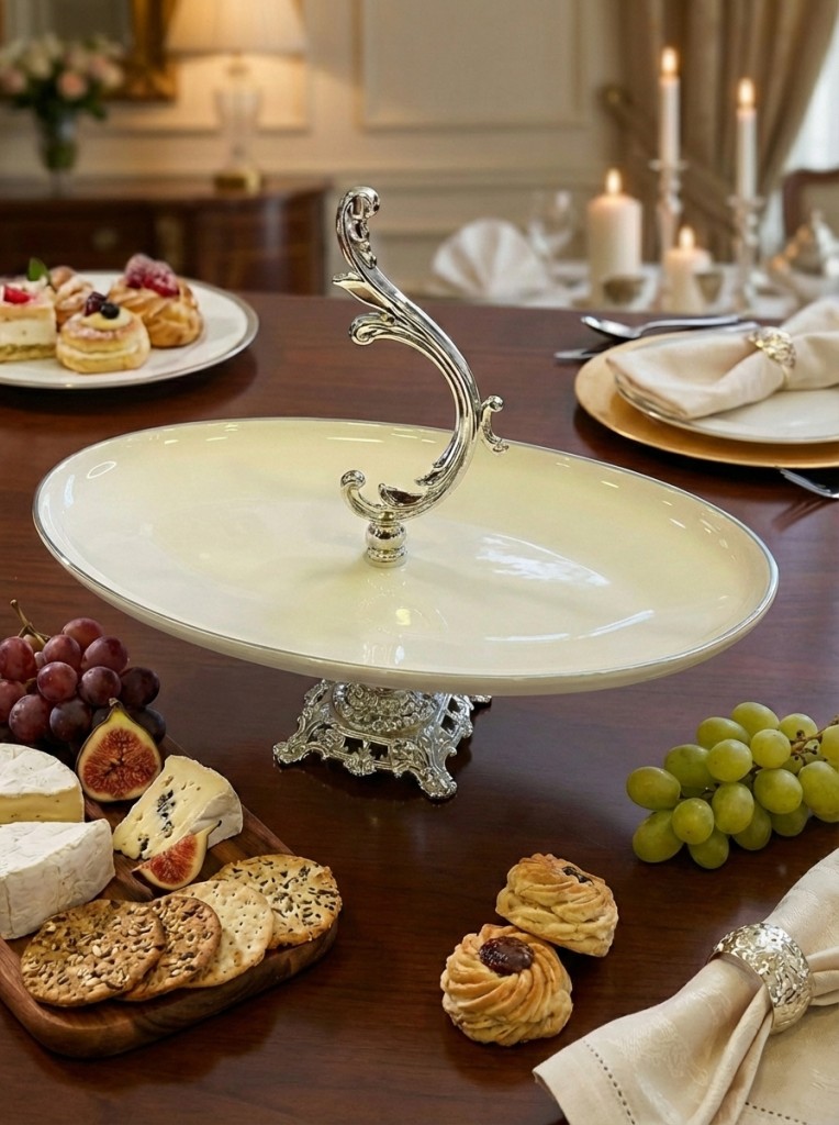 Efegil Bold Altın Yaldızlı 30x22cm Porselen Ayaklı Kayık Sunumluk Tutamaçlı