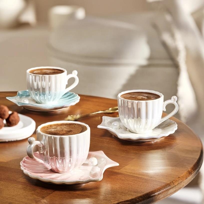 Emsan İstiridye Pembe 2 Kişilik Kahve Fincan Takımı