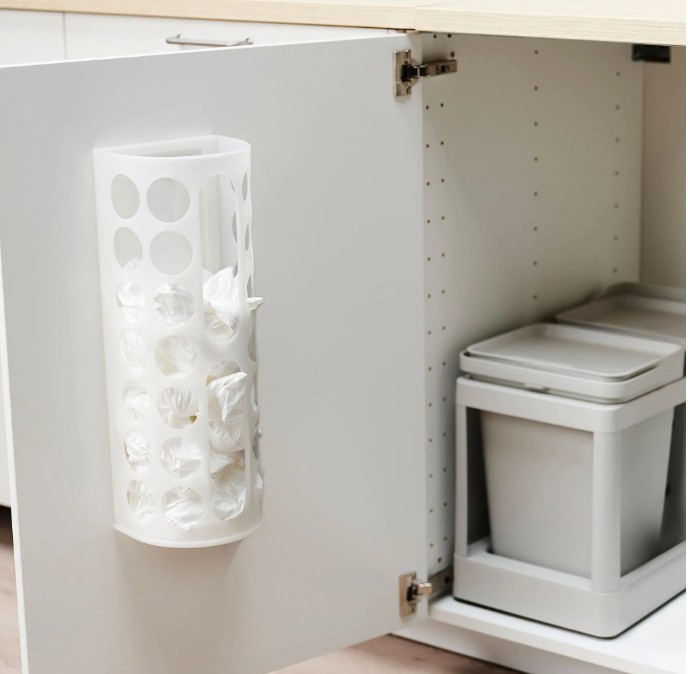 Tencere kapağı düzenleyici ile saklama kaplarının kapaklarını da depolayabilirsiniz.