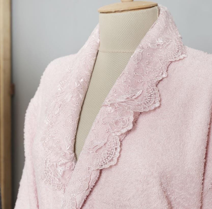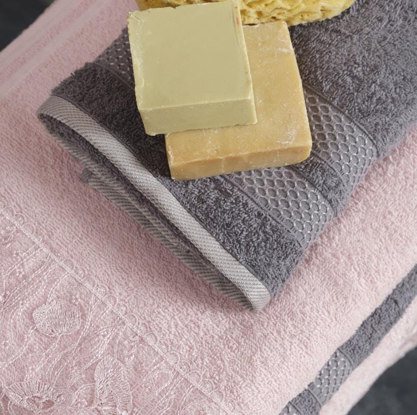 Karaca Home Bornoz Aile Banyo Seti Dantelli Olina Pudra/Gri