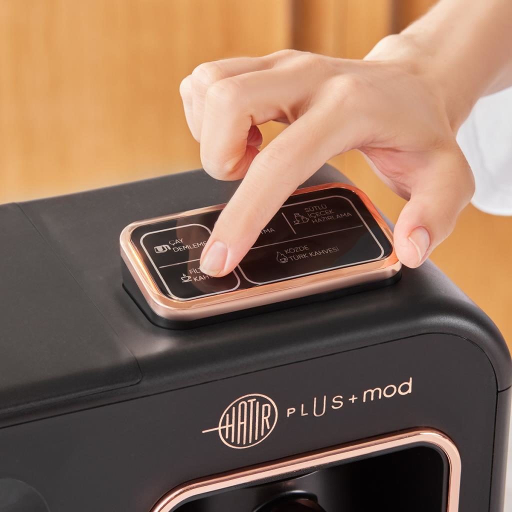 Tek seferde 10 fincan içecek hazırlama kapasitesine sahip makineniz, filtre kahve veya çay demlerken eş zamanlı olarak köz tadında Türk kahvesi ve sütlü içecek hazırlama özelliğiyle dünyada ilk ve tek! Günün farklı zamanlarında farklı lezzetler tatmak, tüm ailenize ve misafirlerinize kolayca ikram hazırlamak için tasarlanan Hatır Plus Mod şimdi sizin gibi çok yönlü.