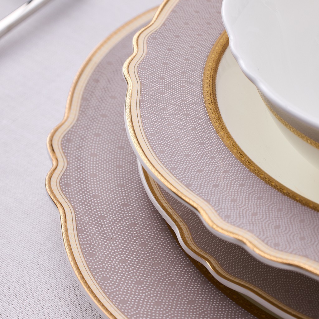 Altın, zenginliği ve ihtişamı temsil ederken aynı zamanda sofralarınıza sofistike bir parlaklık katıyor. Her bir parçanın altın yaldızla süslenmesi, yemek deneyiminizi bir adım öteye taşır.