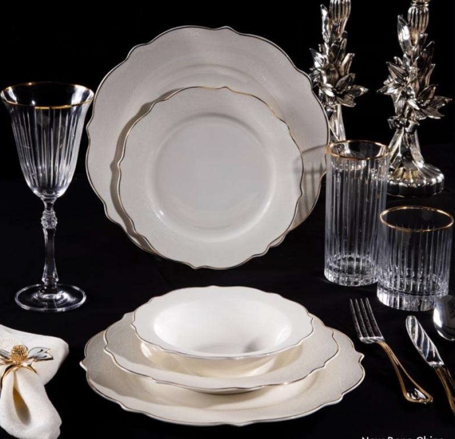 Porland 60 Parça Altın Yaldızlı Yemek Takımı, özel tasarımı, krem rengi ve altın yaldız detaylarıyla öne çıkan bir üründür.