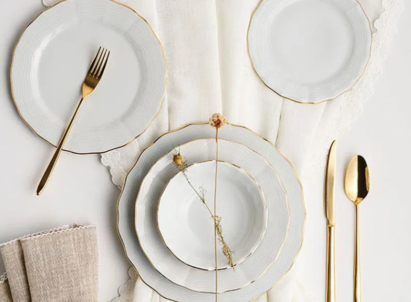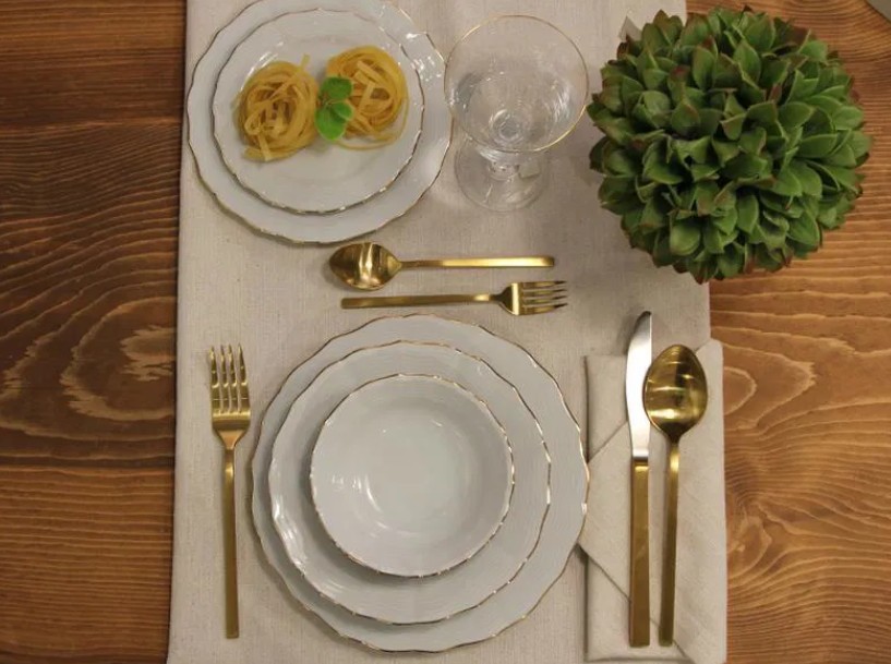 Porland Wavy Altın Yaldız 60 Parça Yemek Takımı