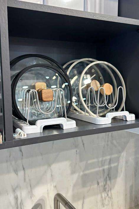 Primanova Dolap içi tezgah Üstü tencere tava tepsi kapak tutucu Ürün Ölçüleri:18 x 295 x 13 CMı Tencere kapağı tava tepsi gibi mutfak gereçlerini düzenleyebilirsiniz. ; Parçlar dik konulduğundan dolayı erişim kolaylaşır ; Metal teller ağır ürünlerin dizilmesini sağlar. ; Ayarlı delikler sayesinde farklı boyuttaki ürünler konulabilir. ; Düzenleyiciler uç uca eklenerek uzatılabilir